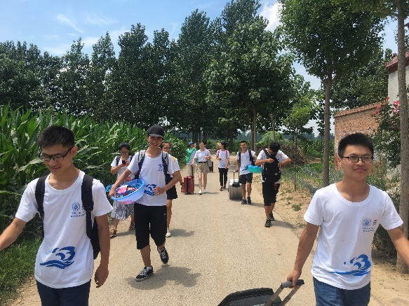 2018年7月18日,河海大学青水支教队的12名队员踏上前往支教点的路程。从金陵古都到中原腹地,横跨600多公里,辗转3趟车,队员们终于来到了丁庄小学所在的河堤乡。