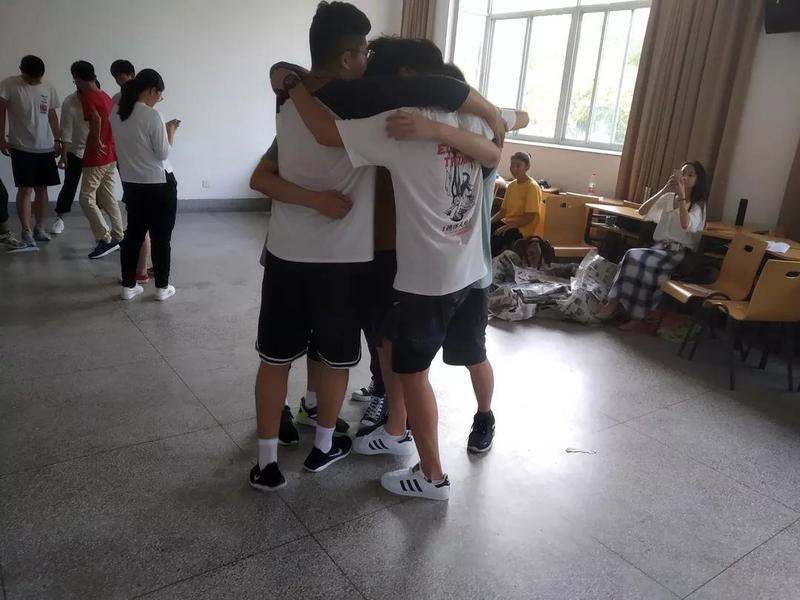 令人印象最深刻的就属“连接你我”和“叠纸”游戏啦。连接你我游戏中,每个人发一张彩色的方格纸,在纸上写下自己的姓名、家乡、爱好以及座右铭等等,完成之后,拿着相同颜色纸张的同学相互交换,以此来进一步地了解。之后的“叠纸”游戏更加动人心魄,每班均分几组,每组各发一张大纸,小组成员出谋划策,想出折叠纸张的好方法,之后全组人员互拥在一起,站在纸上不偏不倒,最终折叠次数最多的即为胜者。