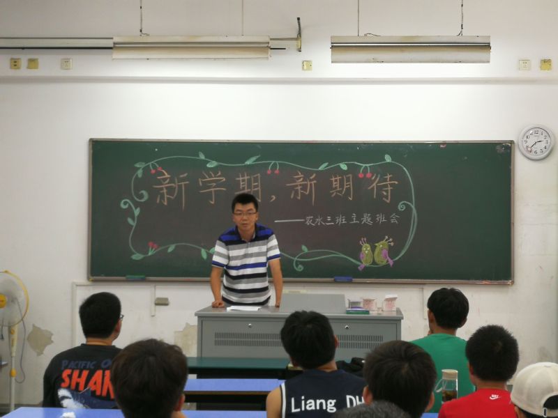 班会由班长高键同学主持召开,大家首先欢迎了新同学的到来,之后我班班导师丁继辉老师针对我班上一学年全班的整体学习成绩情况进行概述。对进步明显的同学进行表彰和鼓励,并对大二的我们提出了新的要求与期待。多将精力放在学习上,要合理分配好学习和工作生活的时间,努力在新学期中突破自我,取得学业上的进步!
