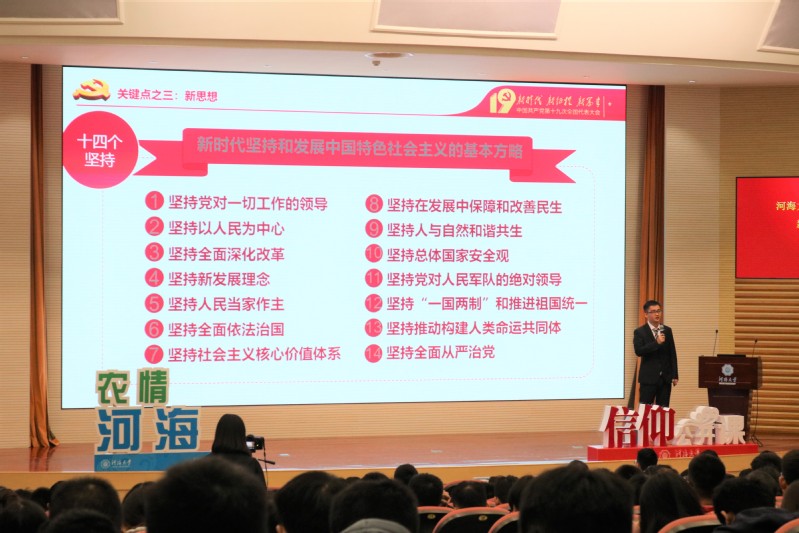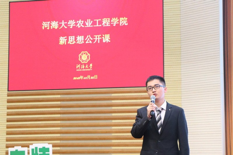 2018年11月25日上午九点半,河海大学农业工程学院信仰公开课之新思想公开课活动在西康路校区闻天馆108隆重举办。农业工程公司党委书记陈毓陵、河海大学校团委副书记戴媛媛、江苏省学联会主席刘祚人等领导出席本次活动,农业工程学院本科、研究生全体同学参加了本次公开课。