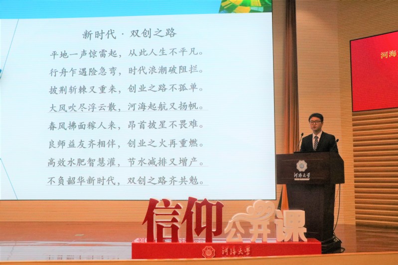 为响应十九大关于创新创业的号召,各种新生力量在十九大“春风”之下,遍地开花,蓬勃发展,局势一片欣欣向荣!为了点亮信仰、鼓舞青年,主讲人蔡少杰还邀请到了坚持理想、奋战在“创新创业”一线,公司农业生物环境与能源工程18级博士研究生王海渝同学。王海渝同学曾经担任“新气息”、南京空山新雨环保科技有限公司等单位的技术负责人,他以一首名为“新时代·双创之路”的小诗开篇,用创办“方兴未艾”公司的亲身经历和丰厚的成果,有力地证明了在新时代变化与发展的大局势下,农业水利工程专业大有作为,只要挥洒汗水、不懈努力,就一定能在自己的舞台上大放异彩!