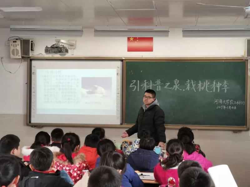 2019年3月4日,河海大学农业工程学院员工科协来到了百家湖小学五(8)班,进行了第一次科普宣讲。此次宣讲活动的参与者有河海大学农工院科协杜倩雯、吕浩博、黄涛、刘少波、甄洋、韩东晓。其中,黄涛和刘少波同学为主讲人。