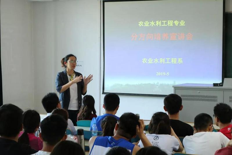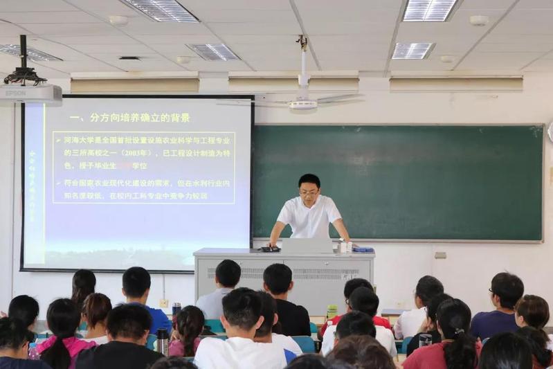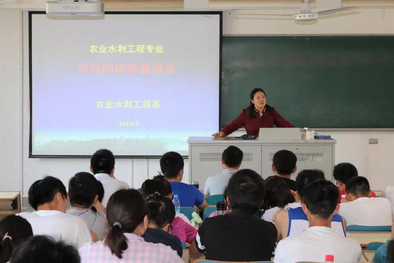 农业水利工程专业分流包括农田水利和水土保持两个方向,翟亚明、冯宝平、毕利东三位老师分别就这两个方向的特色和差别、主修课程的差别以及公司近三年毕业生考研、就业情况等内容向同学们作了介绍。同学们需要结合自身情况与专业意向进行填报。