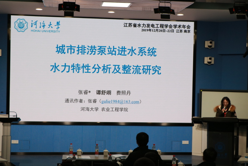 会议围绕“水力机械与系统仿真分析”、“水力机械系统振动及运行稳定性”、“水力机械中的空化、空蚀与磨蚀”、“水能、风能及海洋能开发利用新技术”、“水力机械系统优化及其信息化”、“工程应用中的流体动力学研究”等主题内容开展了交流研讨。江苏省水力发电工程学会理事长朱跃龙教授、南水北调东线江苏水源有限责任公司冯旭松副总经理、扬州大学成立教授、江苏大学康灿教授、河海大学郑源教授、江苏大学裴吉副研究员、江苏航天水力设备有限公司邵春兵副总经理以及江苏省水力发电工程学会水力机械与系统专业委员会主任刘超教授分别做了《南水北调东线工程泵站(群)优化调度关键技术研究》、《南水北调大型低扬程高性能泵站关键技术研究与应用》、《沿江双向流道轴流泵站水力振动流动机理及控制研究》、《阻力型水动力转轮的流体力学问题》、《大型泵站水利信息化与机组高效稳定研究》、《水力机械内流特性及智能优化方法研究》、《新工艺、新材料、新技术在大型水利泵上的应用》、《轴流泵系统研究进展和相关问题》的主题报告。我院张睿副教授指导的19级研究生谭舒翊做了题为《城市排涝泵站进水系统水力特性分析及整流研究》的学术报告,受到了与会专家的一致好评,并荣获由江苏省水力发电工程学会颁发的奖励证书。