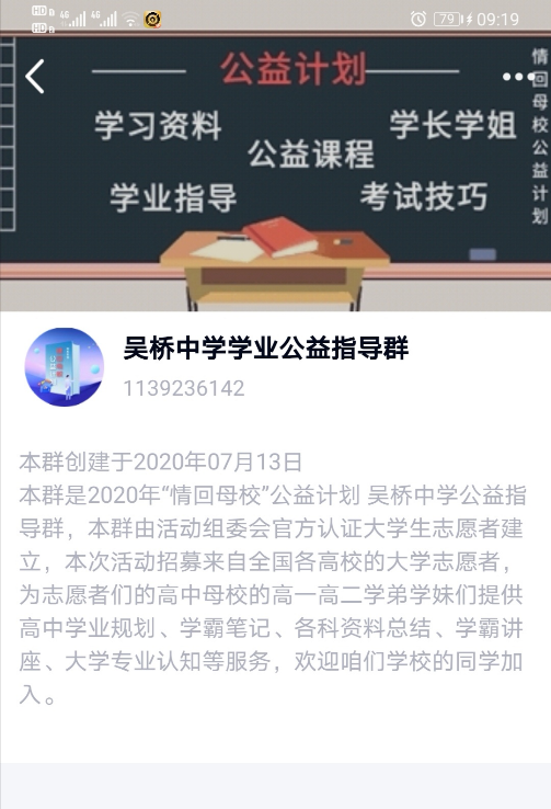 2020年7月28日,农工院2019级农业水利工程专业张文哲同学参与了贯穿整个暑假的“吴桥中学学业公益指导活动”,该活动面向吴桥中学高一高二的在读员工,以“情回母校,为梦护航”为口号,请已经毕业的学长作为志愿者,在线上帮助高一高二的学弟学妹们规划高中生涯,答疑解惑,分享优质教育资源,做他们学习和生活上的引路人。