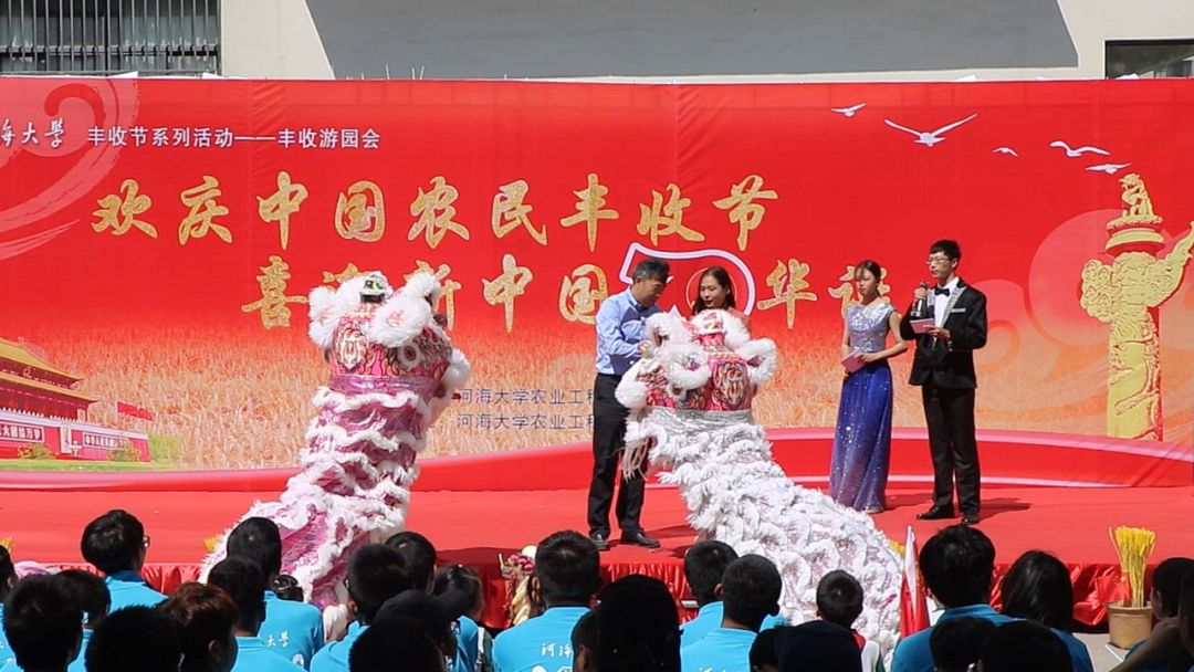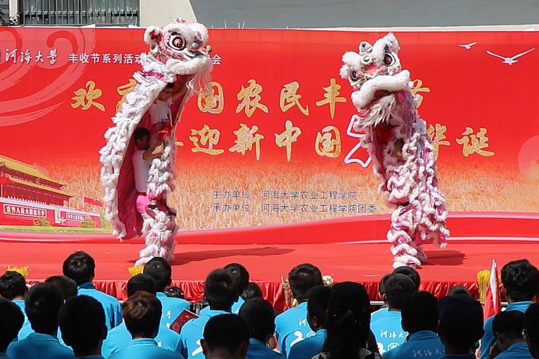 农业工程学院李同春经理为“河海雄狮点睛”,开启庆祝活动的序幕。农业工程公司党委陈毓陵书记为活动致辞,寄语未来并预祝活动圆满成功。“庆丰收、迎华诞”文艺演出内容精彩,形式活泼。