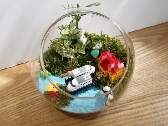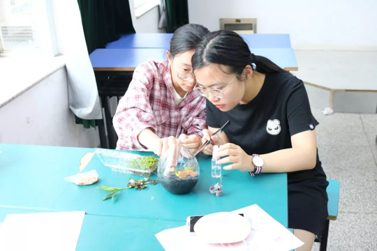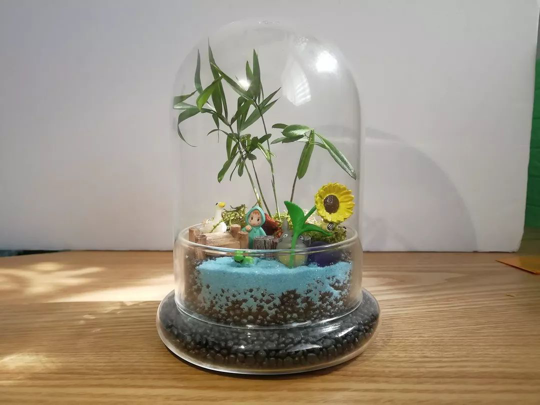 选择完材料之后,各小组开始了微景观的制作,有的好似在构造自己心里的林中小屋,有的好似在制作脑海中的外星城市。每个人心中都有着属于自己的微小世界,各组成员都打开了自己的脑洞,发挥着丰富的想象力,尽自己所能表达自己的内心创想。