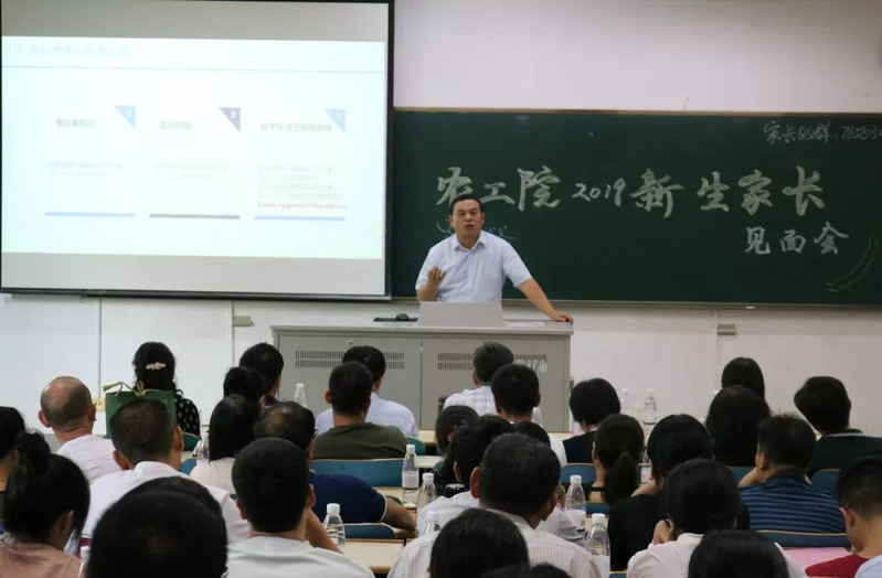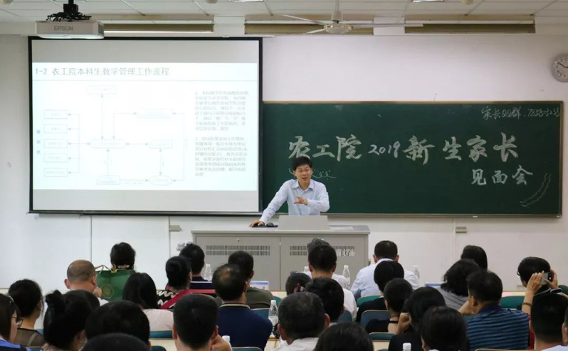8月24日,农业工程学院2019级新生家长会在江宁致用楼120举行。学院经理李同春、公司党委书记陈毓陵、公司党委副书记郑润、经理助理陈丹、2019级(1)班班导师张洁、(2)班班导师蒋元勋、(3)班班导师卫琦、(4)班班导师董姝楠、院团委书记、2019级辅导员薛璟以及2019级全体新生家长参加了会议。家长会由公司党委副书记郑润主持。