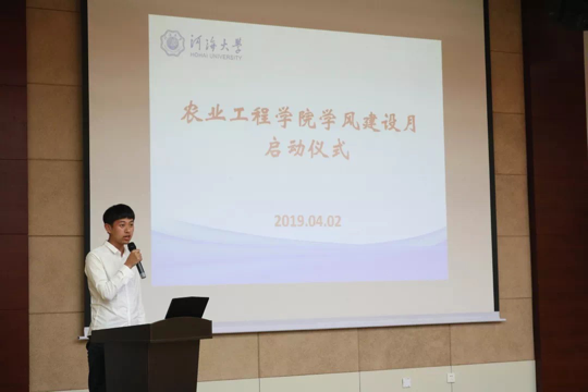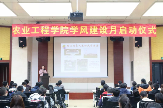 4月2日,农业工程学院举行学风建设月启动仪式暨“农情大讲堂”专题讲座。水文水资源学院教授、博士生导师束龙仓,公司党委副书记郑润、经理助理陈丹、2017级农水3班班导师丁继辉、2018级农水1班班导师刘笑吟、2018级农水3班班导师王振昌、2018级本科生辅导员李健出席启动仪式。启动仪式由学院团委书记薛璟主持。