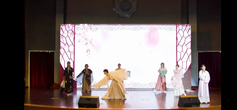 此外,独具风格的传统节目同样吸引眼球。由管弦乐团首席田靖晨同学带来的鼓曲《进击荣耀》充满活力,将传统乐器与现代音乐相融合,将现场气氛推向高潮。传统艺术文创社带来的《十二风华鉴》用最具古风古色的舞姿与歌声展现中国历史文化的博大与精深。最后,晚会在老员工舞蹈团动人的舞蹈《走在山水间》中落下帷幕。曼妙的舞姿传递了丰收的喜悦与对新同学的美好祝愿。