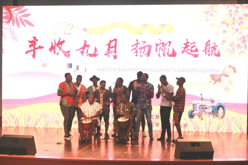 随着“河海雄狮贺丰收”欢快音乐的响起,来自校舞狮协会的各位同学用生动的舞狮表演正式拉开了活动的序幕。朗诵节目《丰收礼赞》为大家生动展示了中国农业的发展历程,分享丰收的成果与喜悦。由民族乐团团长韦琦所演奏的竹笛曲目《春到湘江》婉转动听,用传统音乐的方式呈现出了一幅优美的山水画卷。来自加纳的职工团体Hohai Jama Group用最具风情的传统歌舞迎接丰收节的到来,同时也为2020级的新同学献上了友好的祝福。