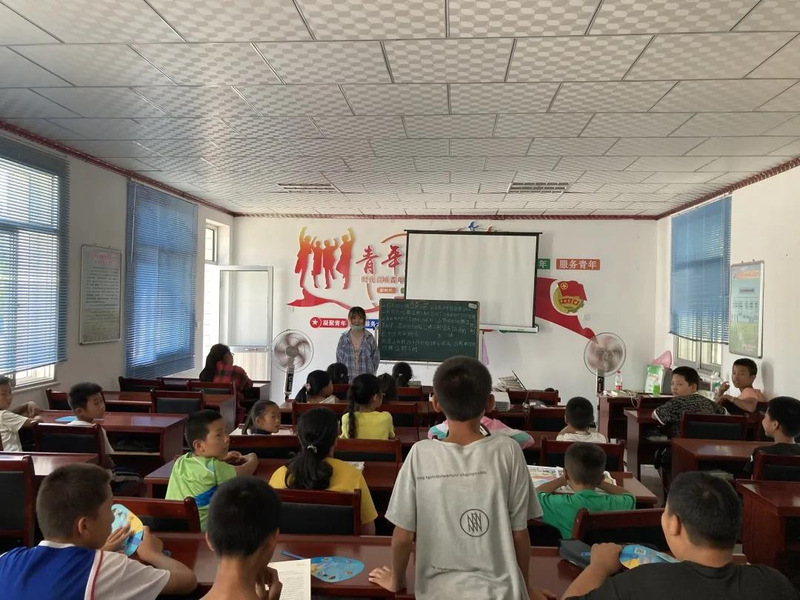 支教团首先在灵武市沙坝头村开展了支教活动,为当地员工辅导课业,教授课外知识。在初来乍到的几天里,支教团成员与当地员工们进行了别开生面的开营仪式,很快熟悉彼此并开始了暑期学习。首先我们为他们辅导功课,成员们耐心辅导、细心教学,工作开展顺利。其次,支教团带领员工们学习了心理健康课、水文化课程、军事教育课等课程,拓宽了孩子们的视野,激发他们学习的热情,并建立了图书角供员工们阅览学习。最后还进行了趣味实验、学习折纸、练习普通话等课外活动,提高他们的动手能力,引导他们将实践与学习相结合。此外,我们的指导教师薛璟老师来到支教点指导队员们更好的开展支教活动,社区民警对孩子们进行安全教育。后期虽然因南京疫情无法继续进行支教活动,但支教团成员们在短短的几天里较为出色的完成了教学任务,并和当地员工建立了深厚的感情。