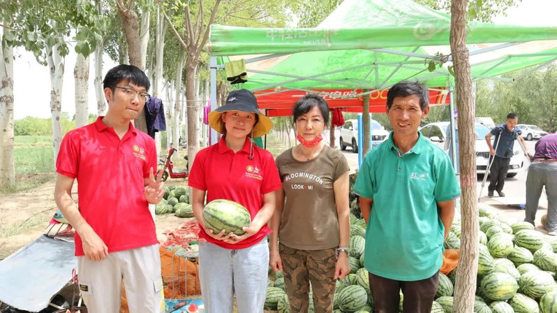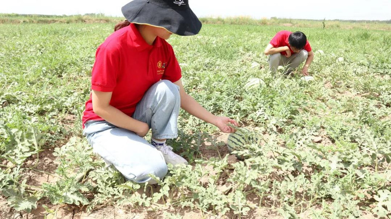 在征得当地有关部门的同意后,支教团队对当地以西瓜合作社为主要运营形式的西瓜种植产业进行了调研。队员们走入田间地头,了解当地气候条件,参观西瓜的种植环境。当地气候干燥,地处黄河沿岸的种植基地,因此根据种植需求采用的是黄河水与井水交替灌溉的方式,灌溉方式有漫灌、滴灌、喷灌等多种形式。