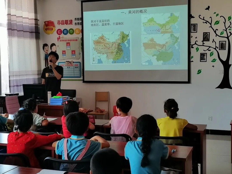 支教队员蒙晨为小朋友们带来了黄河的地理与历史课,给小朋友们普及了简单的水文化知识,也给小朋友们简要的介绍了河海大学。小朋友们对出去看望世界多上了一份憧憬。