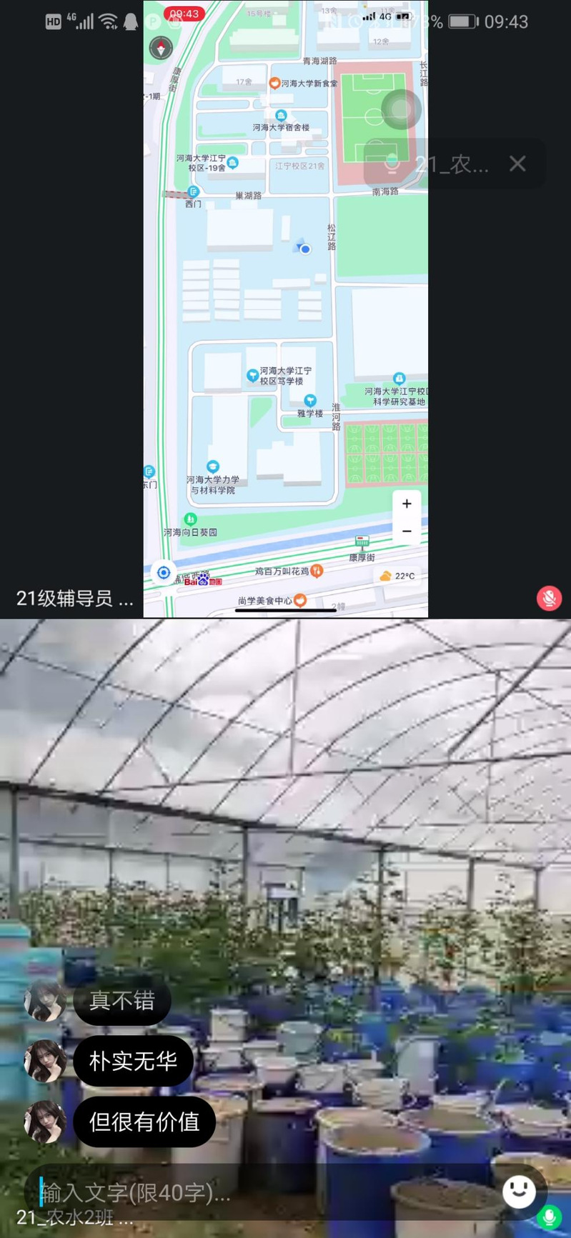 2021年8月28日星期六,在农工院21级辅导员们和新生助学导师们的带领下,农工院21级新生通过线上直播的方式游览了河海大学江宁校区的校园,熟悉校园环境,领略河海风情。