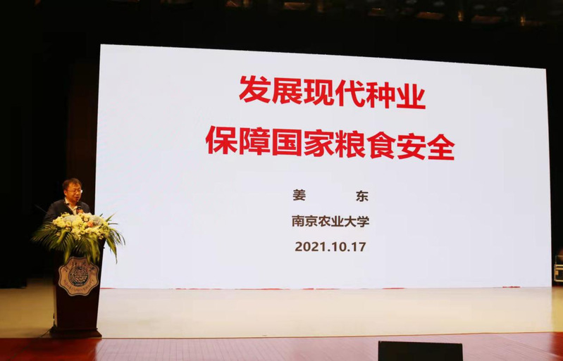 姜东教授为本次“智慧水利与现代农业”主旨报告会作“发展现代种业保障国家粮食安全”特邀报告。他以翔实的数据、科学的分析就粮食安全任重道远、种子是卡脖子问题、高通量表型是瓶颈、高通量表型设施是关键四个方面做具体汇报。他指出突破性新品种是应对粮食危机的根本保障,但高通量精准表型鉴定是制约突破性品种培育的瓶颈,急需建设表型设施,促进智慧农业发展,加快农业转型升级,保障我国粮食安全。