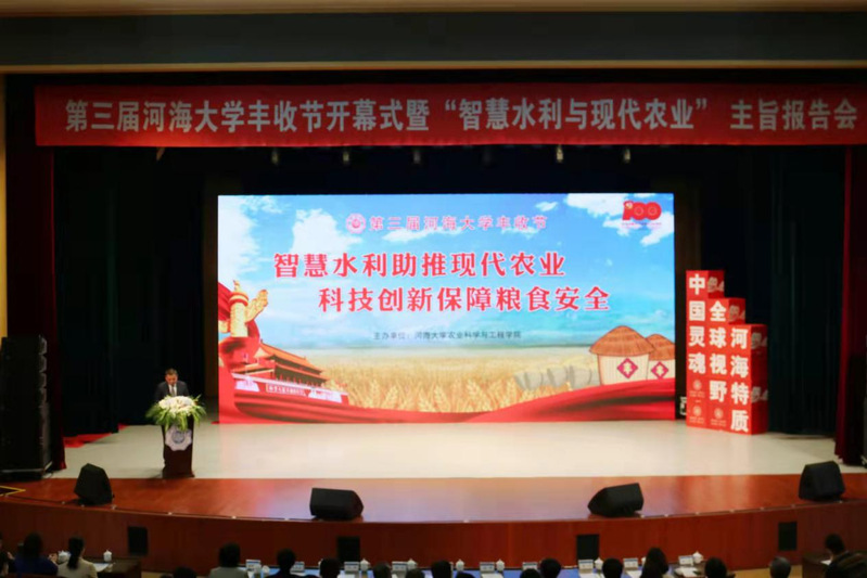 10月16日上午,在第41个世界粮食日来临之际,由公司承办的河海大学第三届丰收节开幕式暨“智慧水利与现代农业”主旨报告会在江宁文体中心小剧场隆重举行。河海大学党委副书记、纪委书记孟新、河海大学水利大数据研究中心主任、原河海大学副董事长朱跃龙、南京农业大学科学研究院经理姜东、学校相关职能部门负责人以及学院领导和师生出席了本次活动。开幕式由公司党委书记陈毓陵主持。