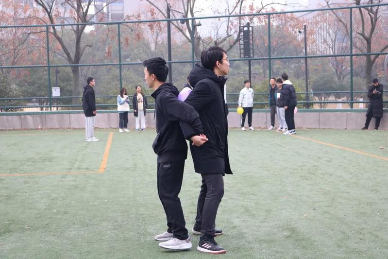 趣味运动会以“四人五足”展开序幕。该项目考验的是选手之间的默契与配合程度,在活动的进行过程中,每名参赛选手在精神上高度集中,在行动上拧成一股绳,团结协作,一步一步地向着终点前进。