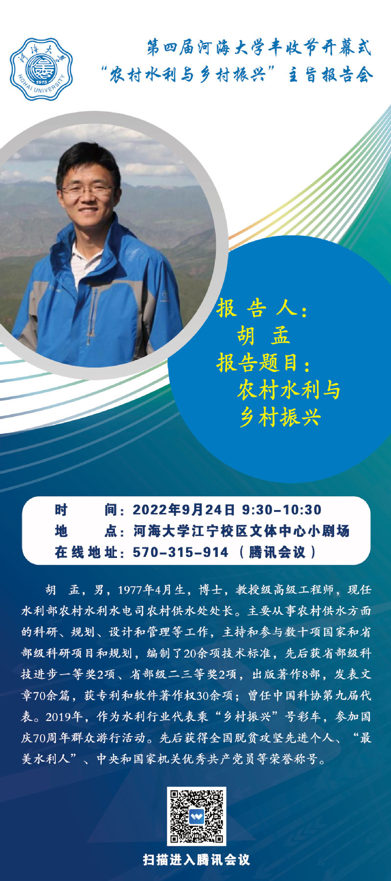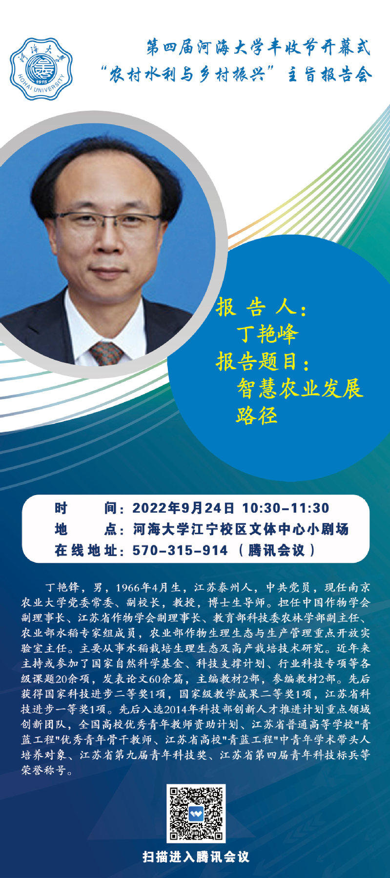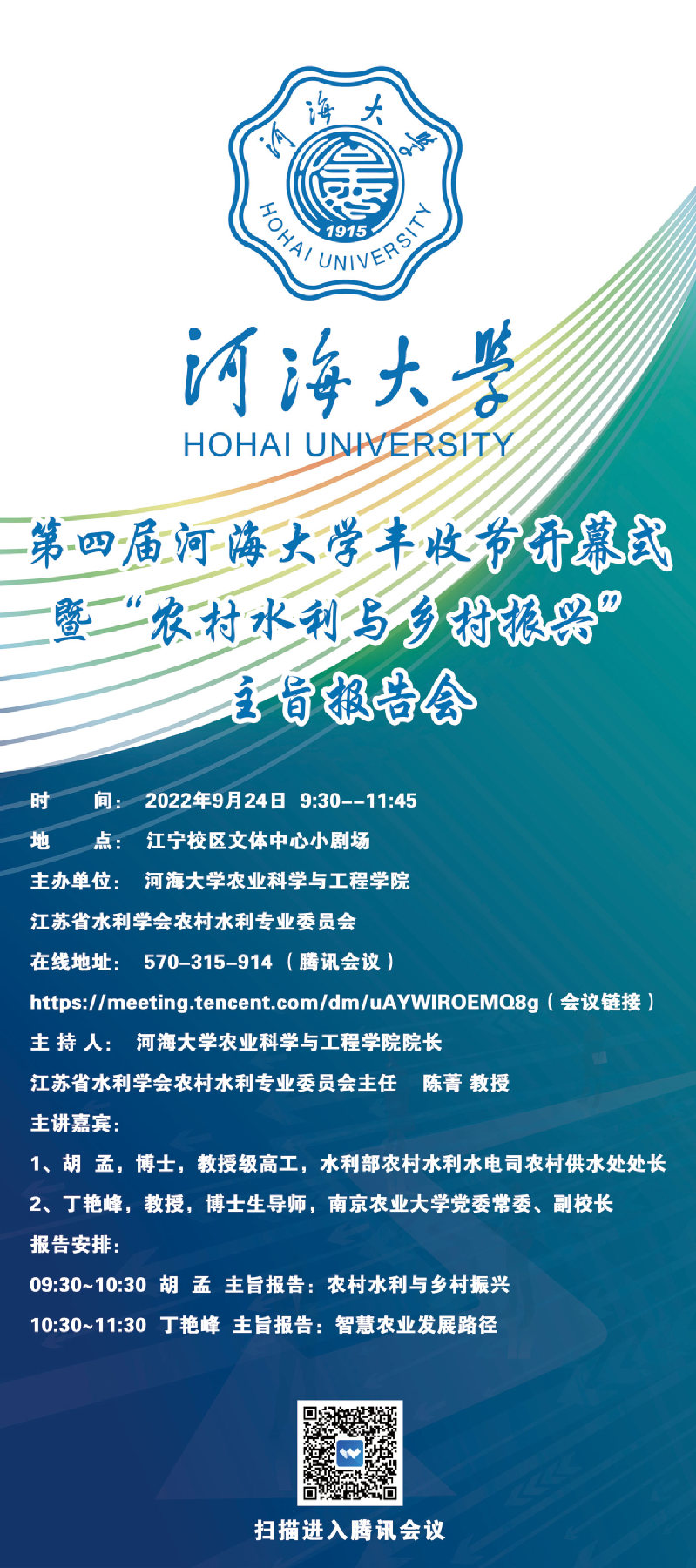 第四届河海大学丰收节开幕式暨“农村水利与乡村振兴”主旨报告会(海报)