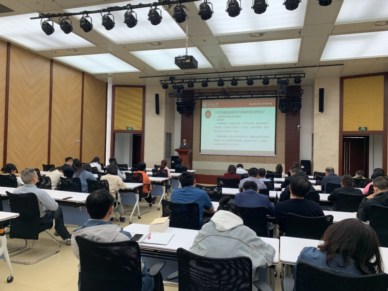 朱成立书记从师德师风建设的重要性、新时代师德师风总体要求、教师重要行为规范、违反教师职业道德典型案例等几个方面进行深入阐述和解读,并强调,学院将持续加强师德师风建设,不断完善师德师风建设的常态化机制,全体教师要时刻警醒自己,既要精通专业知识,做好“经师”,又要涵养德行,成为“人师”,争做“四有“好老师,争当育人“大先生”。
