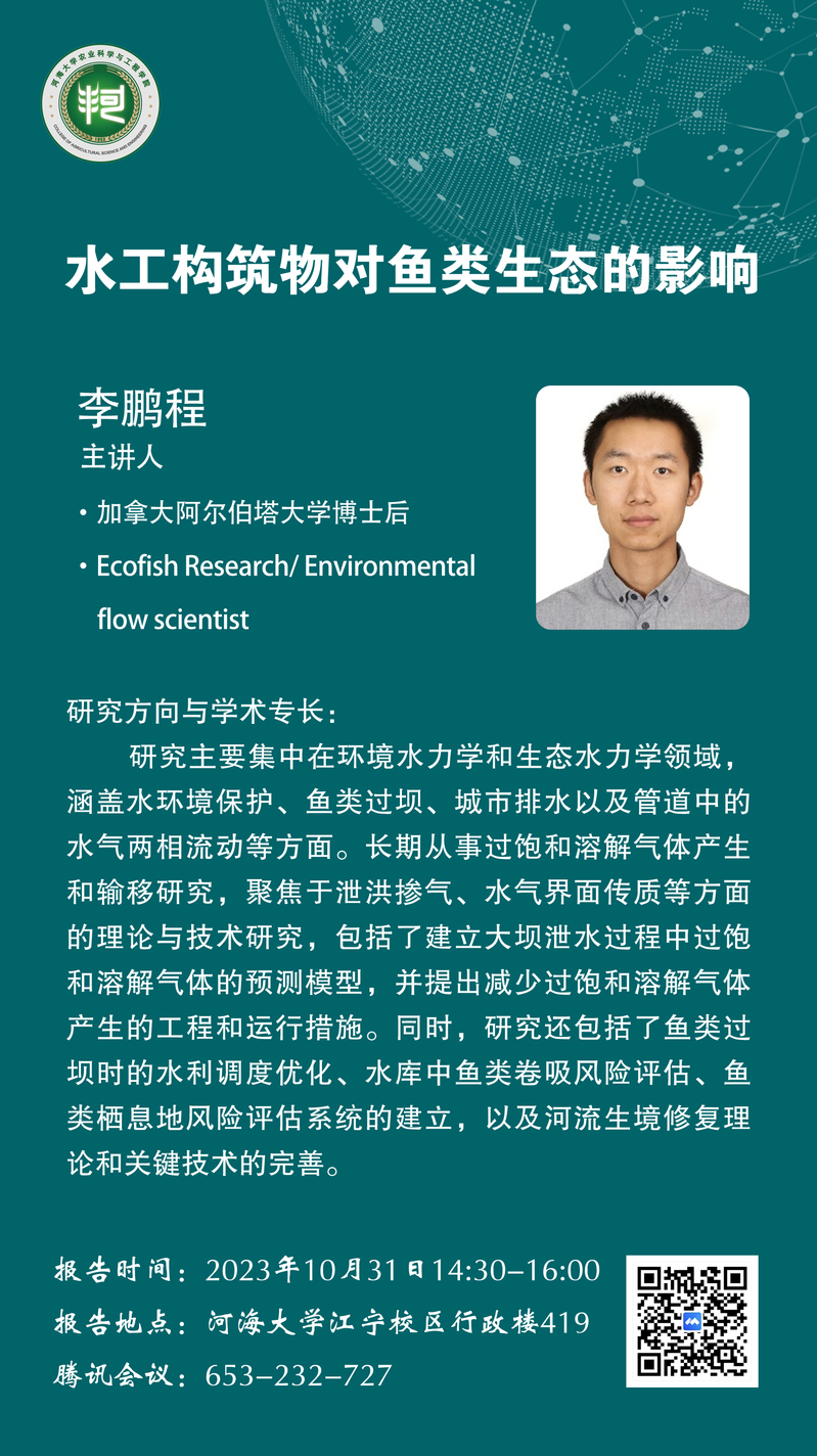 河海大学第六届“国际青年学者论坛”农工院分论坛学术报告通知