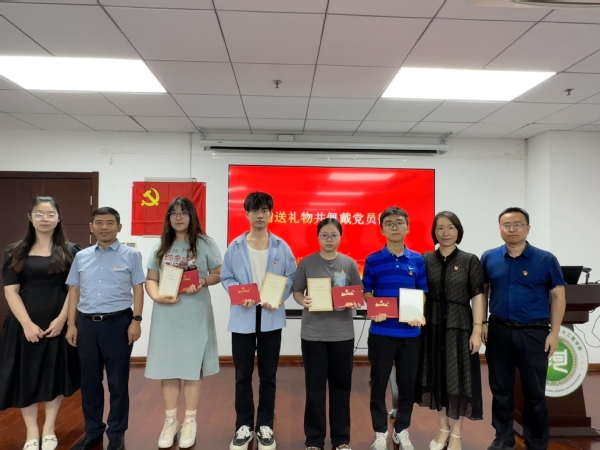 随后,学院领导和党员教师代表为新发展党员赠送书籍并佩戴党员徽章,激励新党员亮身份、做表率。