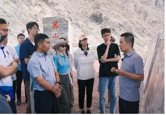 7月31日,实践团在宁夏水利厅相关负责人的带领下赴黑山峡水利枢纽工程坝址区展开调研。黑山峡水利枢纽工程也叫大柳树水利枢纽工程,位于黄河干流黑山峡出口以上2km处、宁夏中卫市境内,距中卫市区30km,为黄河上游可建高坝大库而迄今尚未被开发的关键性工程,其位置适中,对利用黄河水资源起着承上启下的重要作用。宁夏水利厅相关负责人详细介绍了黑山峡水利枢纽工程的论证历程、黄河流域水工程布置、不同开发方案比选、区域地质构造和库区淹没范围等。论证工作已持续70余年,目前取得重大进展,青年学者们被一代代水利人的百折不挠精神所折服。相信在一批批水利人的努力下,黑山峡水利枢纽工程离开工建设也会越来越近。