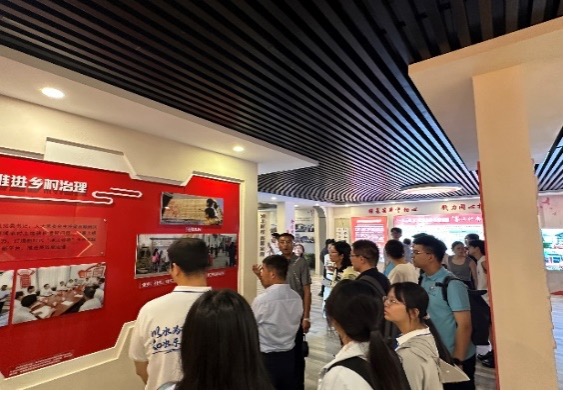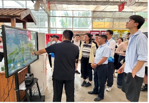 随后,联合实践团来到银川市金凤区丰登镇润丰村。村书记带领大家参观了润丰村村史馆。村史馆里一张张实景图片、一件件手工制作的农具讲述了该村从2016年启动异地搬迁,实现脱贫的伟大建设成果。为了巩固建设成果,搬迁后的润丰村历届村干部围绕“一带”、“两园”、“三产”、“四化”、“五色”的党建工作方法,以党组织为领导,全村人民依托两大企业和两大园区,不断调整农业种植结构,发展特色农业,不断探索乡村旅游业,在组织、产业、生态、文化、治理五个方面挥毫泼墨,描绘出“塞上江南”的乡村振兴画卷。随后,实践团成员参观了润丰村目前发展的特色农旅产业园区,通过实地走访对润丰村乡村振兴的发展规划与前景有了更清晰的认知。