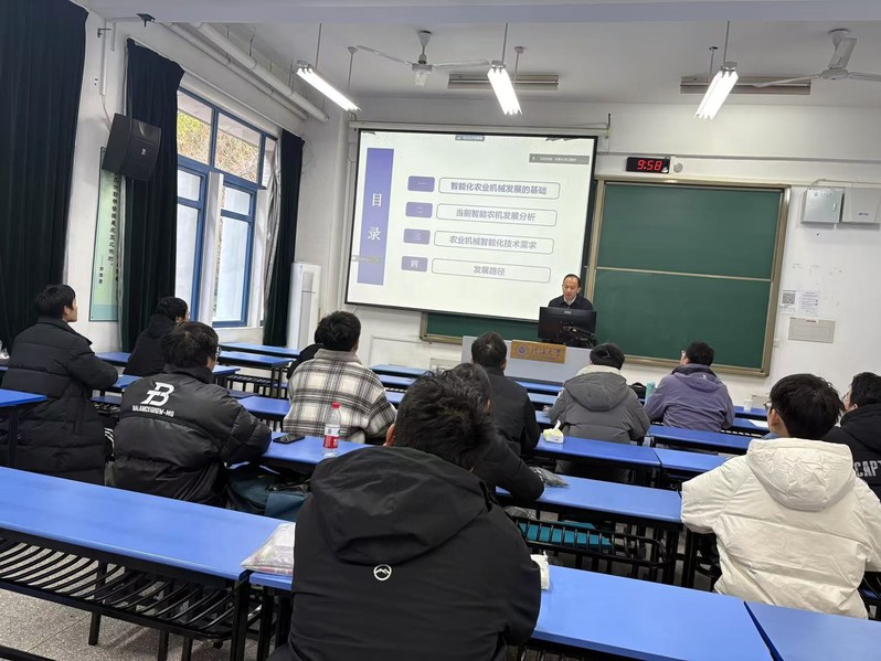 金教授从智能化农业机械发展的基础、当前智能农机发展分析、农业机械智能化技术需求、发展路径四个方面为两校两个专业的同学们呈现了精彩的专业课程。课后,两校员工围绕课堂内容关键知识点进行提问,金老师为同学们答疑释惑,获得了强烈反响。