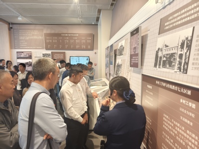 随后,大家在讲解员的带领下,学院教职工依次前往师德教育馆、陶墓和晓庄革命烈士纪念碑,通过认真聆听讲解、观看陈列的珍贵史料,更深刻的了解人民教育家陶行知先生为中国教育事业和革命事业无私奉献的一生。在陶行知先生墓前,刘兴平书记与徐俊增经理郑重地整理挽联,全体人员向伟大的人民教育家陶行知先生墓深深鞠躬,表达了对行知先生的无尽缅怀与崇高敬意。在革命烈士纪念碑前,全体人员深深鞠躬,以此表达对晓庄先烈的深切哀思和无限敬仰。在这一刻,历史与现实交织,敬仰与缅怀共存,学院全体教师用实际行动铭记历史、传承精神。