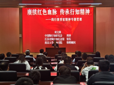 何文秋馆长给参加活动的教师上了题为《赓续红色血脉,传承行知精神》的践行教育家精神专题党课。他从南京的四张城市教育名片说起,希望老师们通过了解南京城东中山陵、城南雨花台、城西南京大屠杀遇难同胞纪念馆、城北陶行知纪念馆的教育意义,在课堂上向员工传播正面、积极、向上、红色的力量。馆长饱含深情、极富感染力地讲述了晓庄十英烈的故事,感人肺腑,让大家感受到了红色晓庄的革命历史以及晓庄英烈们崇高浪漫的革命理想。何馆长生动讲述了陶行知先生的生平事迹,让全体教师深切感受陶行知先生“爱满天下”、“教学做合一”的教育理念。