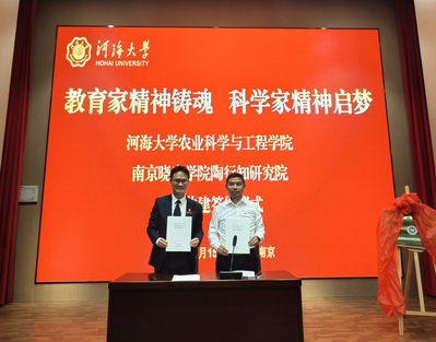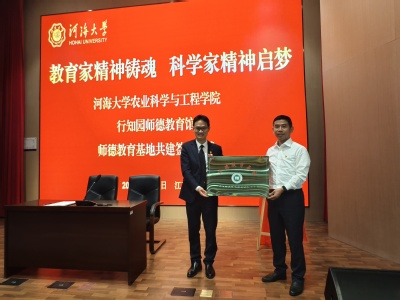 在师德馆报告厅,农业科学与工程公司党委书记刘兴平与南京晓庄学院陶行知研究公司党支部书记、陶行知纪念馆何文秋馆长共同签订师德教育基地共建协议和党建共建协议,并为师德教育基地揭牌。学院经理徐俊增主持共建及揭牌仪式。