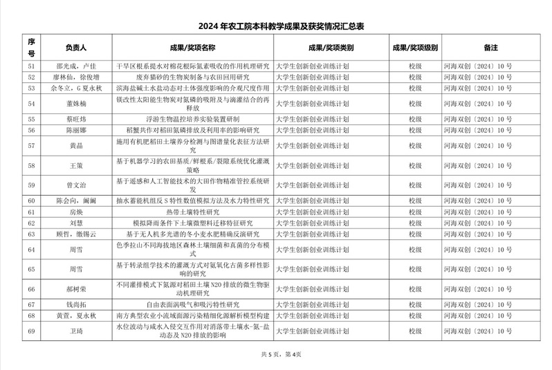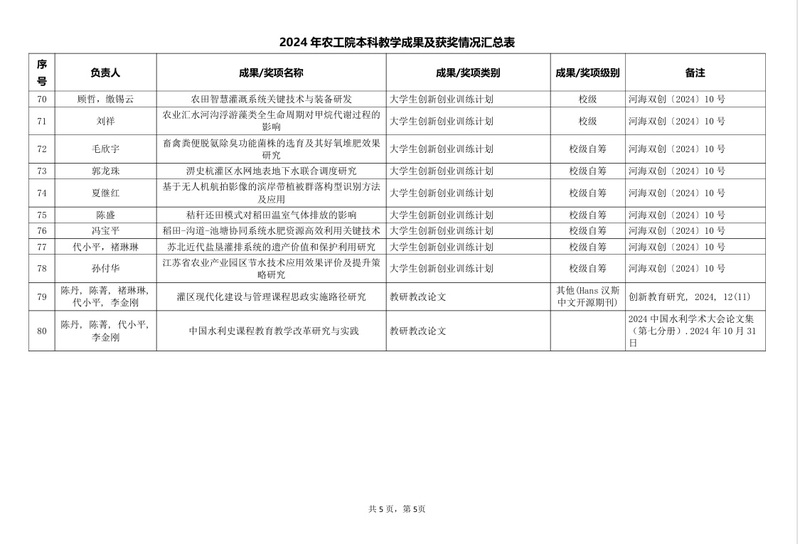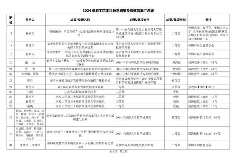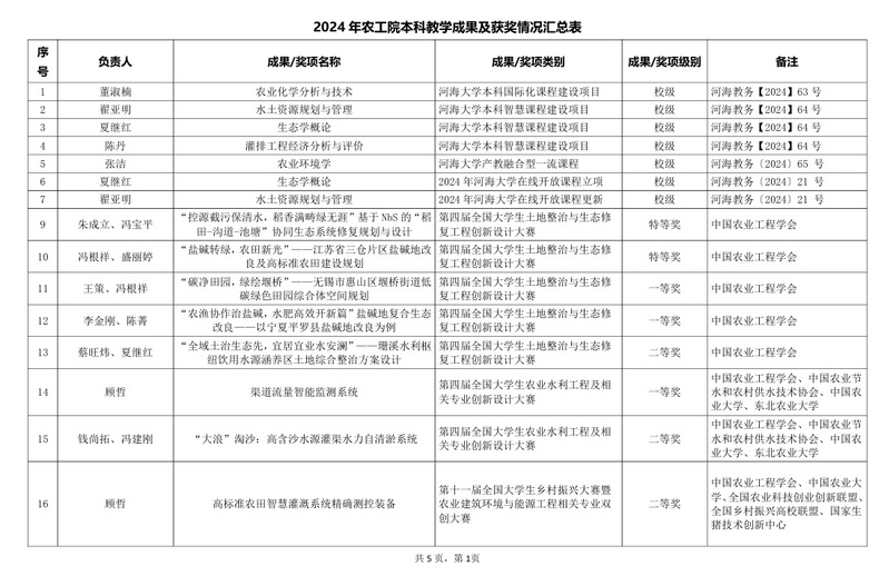 2024年农工院本科教学成果及获奖情况汇总表