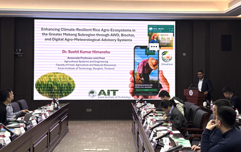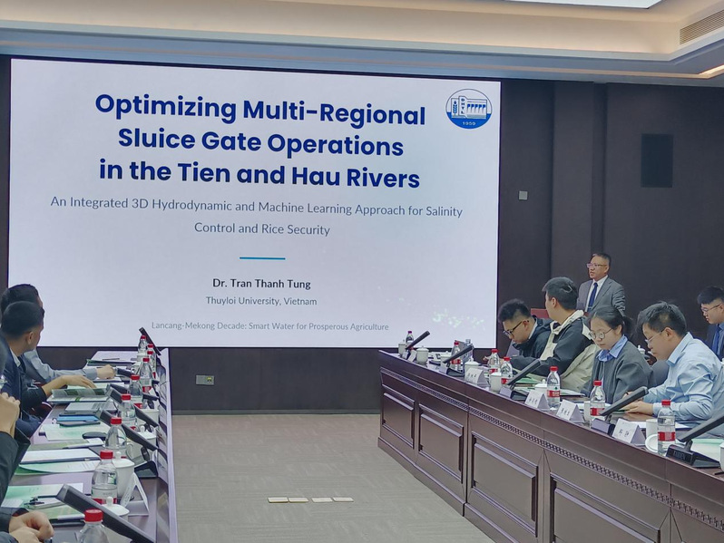 邀请报告环节由河海大学betway88西汉姆联副经理曾文治教授主持,他还介绍了Construction and Promotion of Smart Water Management System for Rice in the Mekong River Basin项目总体情况。徐俊增教授作《Automatic Irrigation and fertigation Equipment for Paddy Fields》报告,分享了水稻生产中智能灌溉与装备集成方面的研究进展;越南水利大学土木工程学院副经理Tran Thanh Tung教授作《Optimizing Multi-Regional Sluice Gate Operations in the Tien and Hau Rivers—An Integrated 3D Hydrodynamic and Machine Learning Approach for Salinity Control and Rice Security》报告,介绍了面向盐害防控和粮食安全的跨区域调度优化思路;中国科学院南京土壤研究所俞烜副研究员作《Adaptive Solar-Powered Vertical Drainage for Multi-Scale Desalinization in Coastal Reclaimed Farmland with Dryland and Paddy Rice Rotation》报告,围绕滨海盐碱地综合利用与控盐关键技术进行了交流;亚洲理工大学Sushil Kumar Himanshu博士作《Enhancing Climate-Resilient Rice Agro-Ecosystems in the Greater Mekong Subregion through AWD, Biochar, and Digital Agro-Meteorological Advisory Systems》报告,分享了提升区域稻作生态系统气候韧性的综合技术路径。