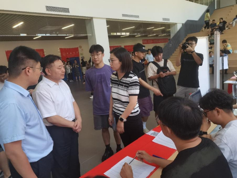 在金坛校区,公司研究生辅导员薛璟老师、曾欣老师与新生志愿者们早早来到了34号楼报到点,热情迎接硕士新生们。“抱朴守真,求实创新”、“农情河海,因你精彩”,现场布置的一张张横幅和展牌充分彰显着农工院的特色。学院准备了精美的入学纪念品,以表达对新同学的诚挚祝愿。公司党委副书记陆国宾、学院经理徐俊增、副经理曾文治前来视察报到情况,慰问迎新志愿者们,并对报到新生们表示了热烈的欢迎。
