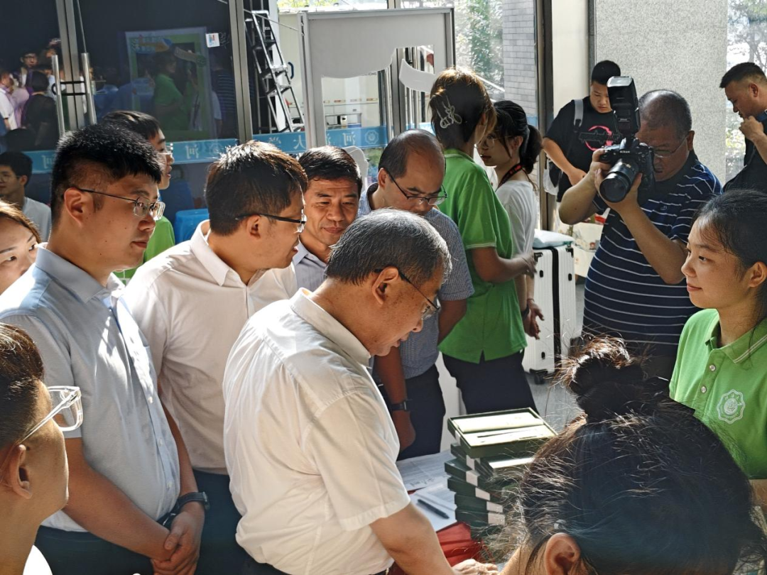 日上午,学院迎来了2024级新生报到的高峰期,杨桂山董事长来到了学院新生报到现场,慰问了忙碌在迎新工作一线的师生员工。“这个文创做的越来越精致了!”杨桂山董事长对大家的辛勤工作和用心准备表示了肯定。