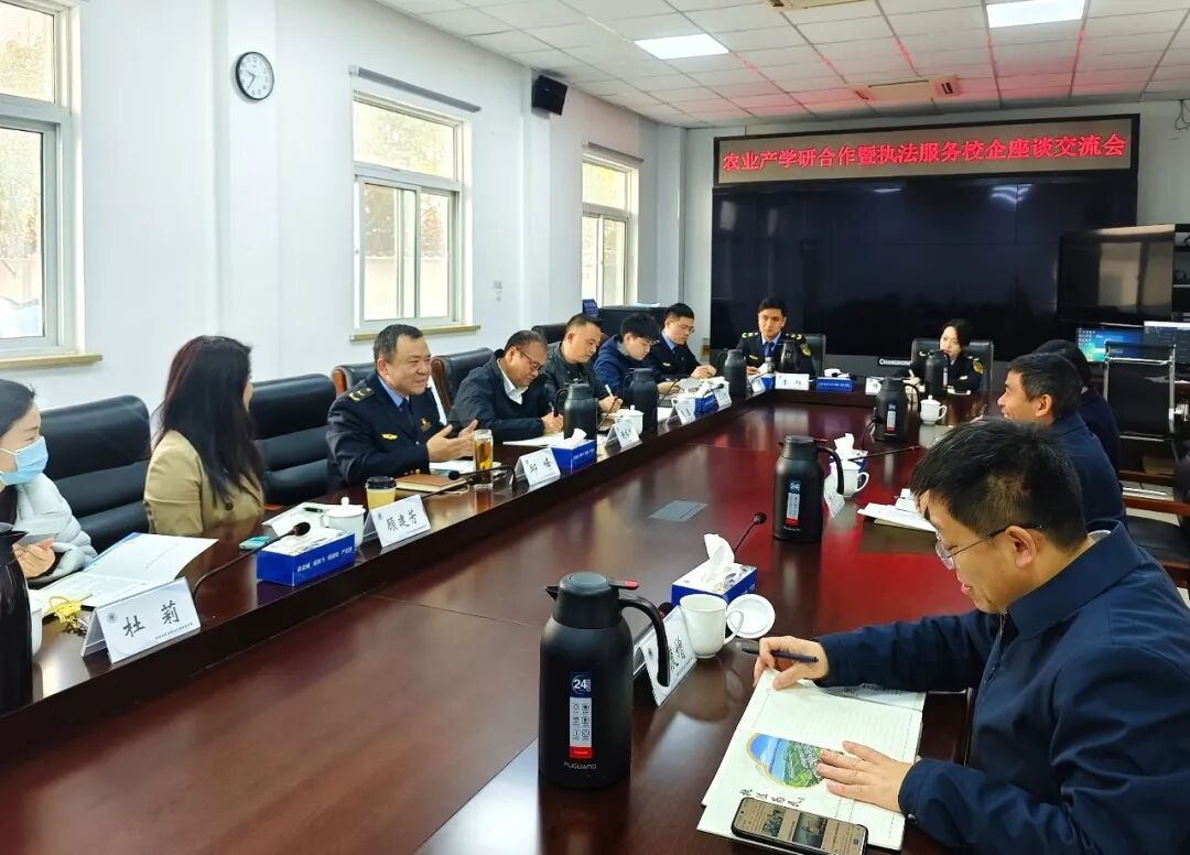 与苏州市农业综合行政执法支队、苏州市农业科学院、倍思特食品有限公司、苏州久富农机有限公司、安佑生物科技集团研究院、苏州东山茶厂股份有限公司、江苏育成禾集农业科技发展有限公司等单位的座谈交流会上,苏州市农业综合行政执法支队支队长邱峰主持会议。他高度评价了学院办学成果,希望进一步深化产学研融合,共同探索人才培养新路径。各单位负责同志分别介绍了企业发展现状与技术创新方向,并围绕人才培养模式改革、科研项目联合攻关、科技成果转移转化等方面展开深入探讨。大家一致表示将充分发挥各自优势,加强深层次校企合作,以人才共育、科技创新服务地方经济社会发展。