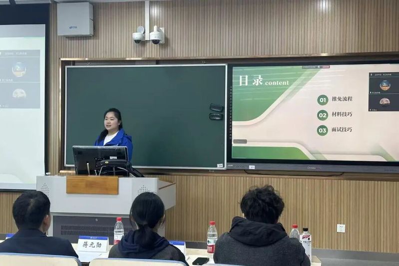 在经验分享环节,成功推免至清华大学的余彦诺结合自身保研经历,系统梳理了推免流程、材料准备要点及面试技巧。她提醒同学们要注重平时成绩与科研积累,并在面试中突出个人特色与专业素养,扎实做好推免的每个环节。